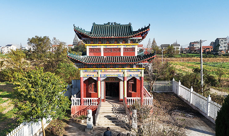 第二天一早,我们即去张氏祠堂参观。张氏祠堂坐落在监利市汪桥镇走马岗村,我们以为是张氏祠堂,而建筑牌匾上写的是“高邮祖茔”,2016年冬建成。“高邮祖茔”外表为方形二层楼阁,门前一副石刻对联:挥师高邮驰骋千里东吴地,择居赣水繁衍三湖荆楚天。里面正中安放三块石碑,上首是“高邮始祖张吴王士诚公、母刘老太君墓碑”;下首是“高邮恩祖温公讳良弼公、乳母何老安人墓碑”;正中是始迁祖“十三世祖张公讳宗武公、母于老安人墓碑”。每块碑上都注明“二零一六年八月八日,高邮后裔立”。室内两侧分别挂有6副牌匾:《知恩图报》《高邮始祖张士诚简介》《恩祖温公良弼渡舟记》《何氏乳母小祭传记》《高祖母刘老安人传记》《宗武公生平简介》。