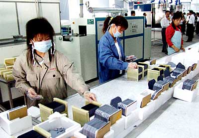 为进一步拉长产业链,做大光伏产业,投资8000万元、于去年10月投资兴建的顺大切片项目,今年已正式投入生产。项目投产后,预计年生产单晶硅片600万片,可新增销售5亿元左右。图为公司员工正在检验包装产品。