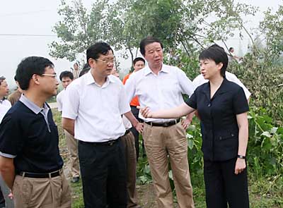 昨日上午,天气虽然阴霾,但湖西受灾群众却抑制不住感激之情。他们声声感谢扬州市市长王燕文对灾区重建家园的真情关爱。从外地出差刚刚回到扬州的王燕文,一早就率扬州市政府秘书长杨明荣以及民政局等有关部门负责人,赶赴湖西受灾现场,慰问群众,查看救灾情况,部署灾后重建工作。我市市委书记陈扬,市长范天恩,市委常委、副市长杨学华和副市长徐永宝陪同。