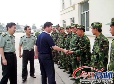 1日下午,副市长徐永宝在市人武部部长缪新、政委陆士坤陪同下,赴江苏省军区舟桥部队慰问接受抗洪抢险训练的我市民兵。