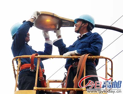日前,供电公司组织员工每天流动在城乡大街小巷,安装、维护、修理10000多盏路灯,全力打造“亮化”工程,迎接“双节”到来。