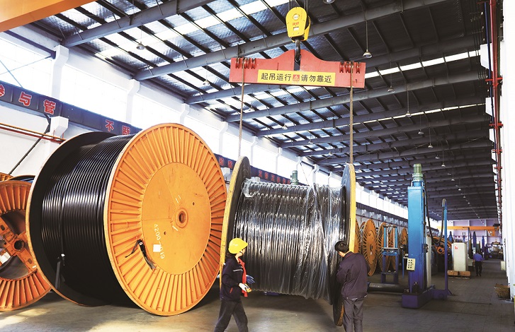 近几年来,扬州曙光电缆股份有限公司重质量、严管理、攻市场,保持了稳步、持续发展,今年1至9月完成开票销售11.16亿元,纳税2256万元,实现利润3650万元,各项指标与去年同期比均有一定幅度增长,其中开票销售净增长4000万元。图为电缆生产车间一角。 王富裕 王林山 摄影报道