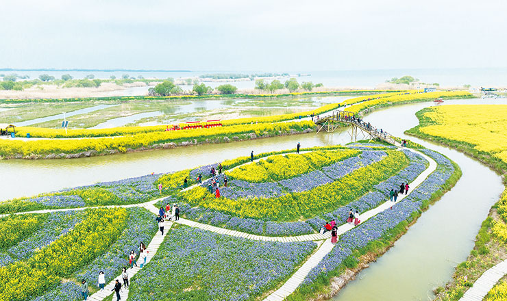 今年,湖上花海景区以“花动一湖春色”为主题,划分为“问春在”“春光里”“寻花集”“传花音”四个板块,即一场开幕式、五维体验、一场沉浸式游园挑战和全周期宣传推广。值得一提的是,景区全新推出“五维沉浸游园”活动,游客可通过视觉、听觉、嗅觉、触觉、味觉多感官体验花海浪漫,提升整体游园体验。景区内还设置了多个主题展区,让游客在赏花之余,还能领略到高邮丰富的文化底蕴和独特的自然风光。
