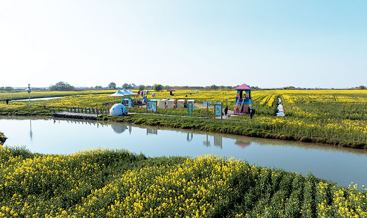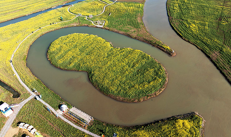 阳春三月、草长莺飞。走进湖上花海,金黄的油菜花肆意铺展,宛如大地被泼洒了阳光颜料,风过时,花浪滚滚,花香萦绕身旁。澄澈湖水与花海相依,波光里倒映着花影与碧空。水鸟欢快穿梭,为这幅美景添了灵动音符。