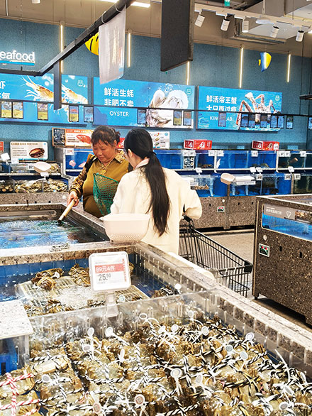 国庆、中秋“双节”临近,我市各大市场、商超商品供应充足,鲜活肥美的高邮大虾、螃蟹备受青睐,各式各样的月饼琳琅满目,一派红火热闹的景象。 韩静芸 摄