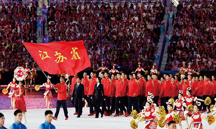 本报讯(记者 文正) 第十五届全国运动会开幕式于11月9日在广州举行,来自江苏省体育局训练中心的亚运冠军、男子田径链球运动员王琦,担任江苏省代表团开幕式旗手。这位来自高邮的青年运动员,扛旗走在队伍前列,成为方阵中耀眼的“领航者”。