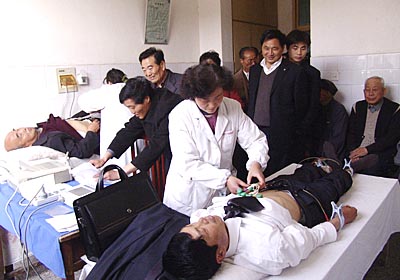 29日上午,市总工会组织200多名劳模来到市人民医院进行免费体检,体现了党和政府对劳模的关心。