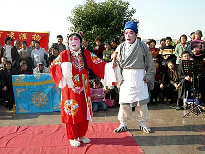 4日下午,市奎楼社区邀请市京、淮、扬戏曲联谊会在蝶园广场举行了一场精彩的演出活动,以丰富社区居民的文化生活,弘扬民族文化,发展地方剧种,受到了广大群众的欢迎。图为京、淮、扬戏曲联谊会的演员正在演出。