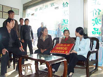 昨日上午,横泾镇康民药店里再现感人一幕,市邮政局、扬州源泉饲料厂、高邮金凤有限羽绒制衣公司、横泾镇教育关工委的退休教师分别向凌芳捐款5000元、2000元、1000元、2000元。凌芳的母亲林富英眼含热泪,衷心感谢社会各界对凌芳的关爱。