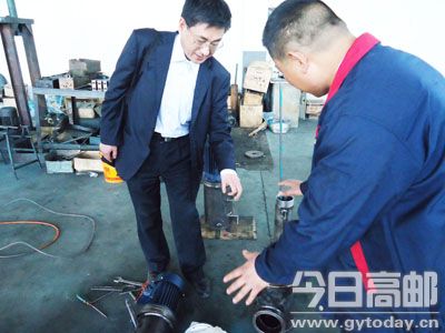 为提升我市液压机械的品牌影响力,掌握市场话语权,我市积极牵头制订《电液推杆》行业标准,并于今年3月向全国液压气动标准化技术委员提出申报提议。日前,全国液压气动标准化技术委员会副主任、省机械研究设计院有限责任公司总工程师杨勇军(左)专程来邮调研。图为杨勇军在汤庄镇液压机械产品生产企业进行实地考察的场景。