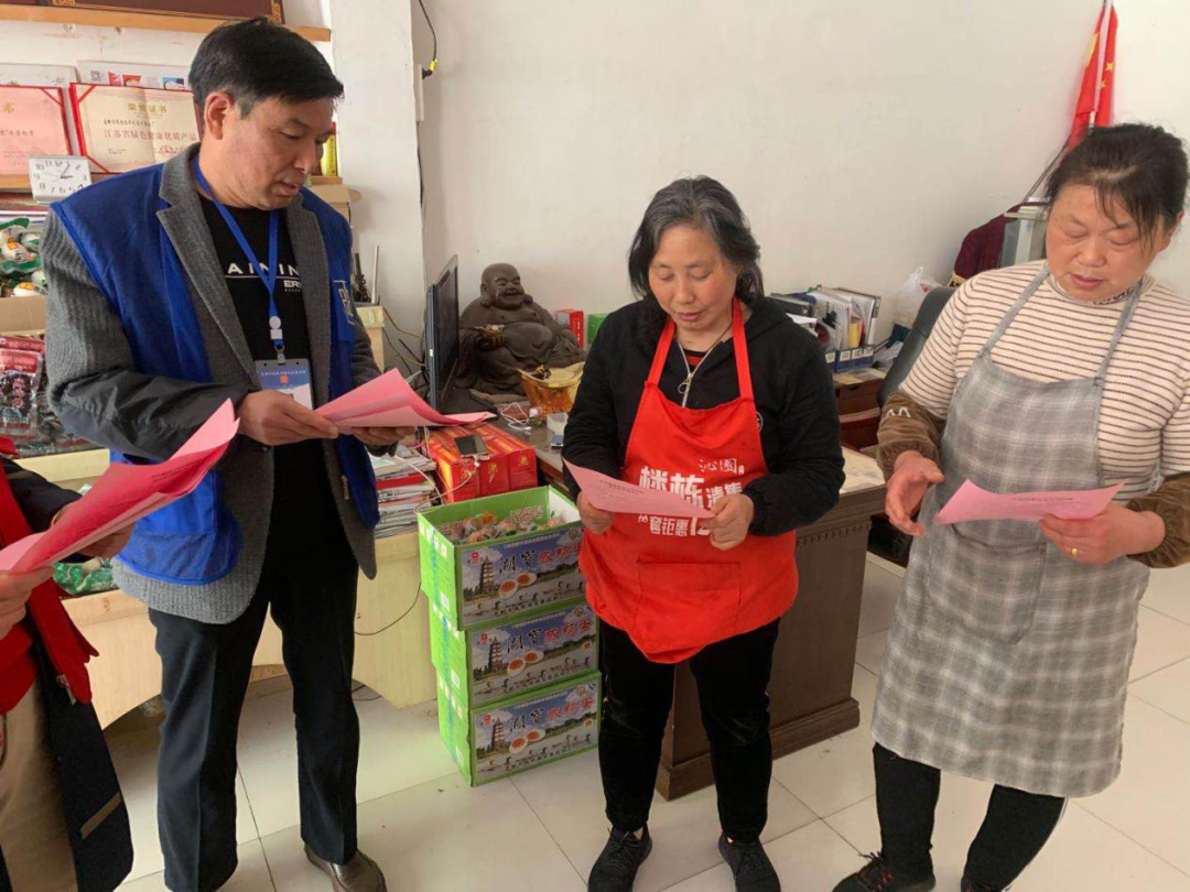 界首镇甓湖社区组织志愿者和网格员,逐门逐户发放《界首镇创建全国文明城市倡议书》和《界首镇新时代文明实践移风易俗倡议书》。