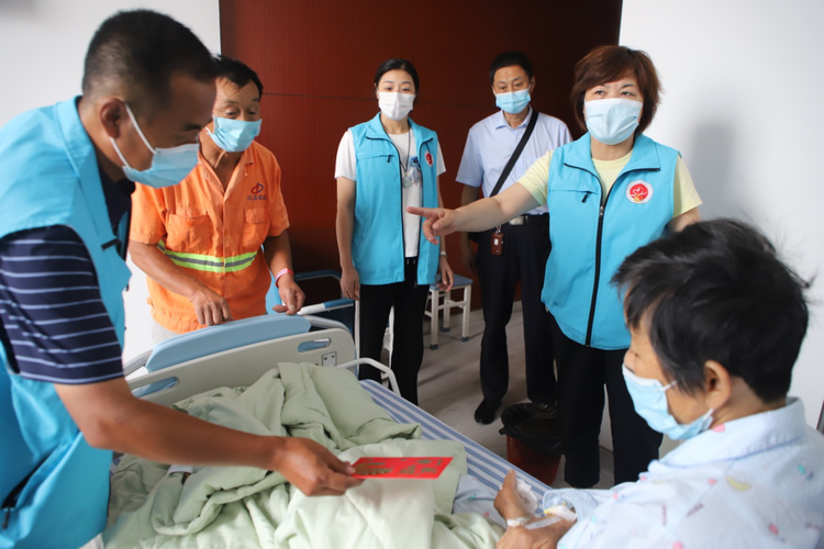 随后,这群“蓝马甲”志愿者们还在金家村负责人的指引下,专程前往市中医医院,看望慰问了在此住院接受治疗、躺在病床上晓琳的奶奶,送上了近千元慰问金及慰问品。
