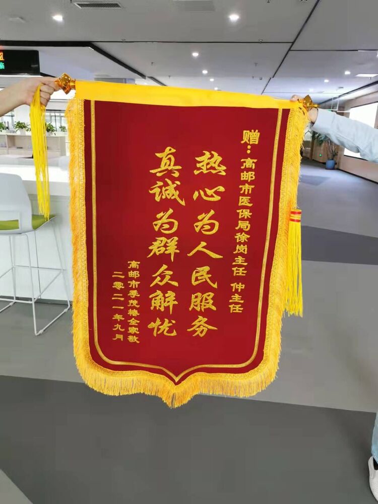 8日上午,市政务服务大厅刚上班,家住开发区的村民季茂椿及其家人就将一面锦旗送到市医保中心窗口,这面写有“热心为人民服务 真诚为群众解忧”的锦旗深刻表达了其对市医保局工作人员全心全意为群众排忧解难的感激之情。