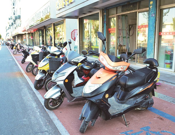 ▲第二人民医院对面商铺门口非机动车摆放整齐