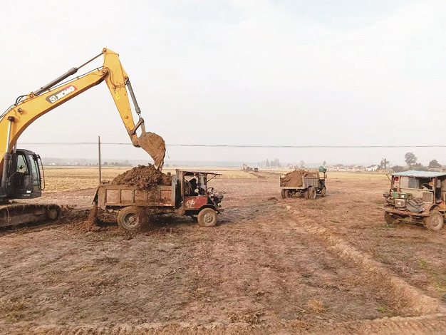 我市2021年度高标准农田建设项目从10月初全面开工以来,市农业农村局积极协调有关部门和参建各方掀起了建设热潮,推动高标准农田建设再升温、再提速、再突破。目前我市2021年度8.5万亩高标准农田建设任务共12个项目已全面开工,施工总进度达30%,施工现场一派热火朝天的忙碌景象。图为项目建设现场。