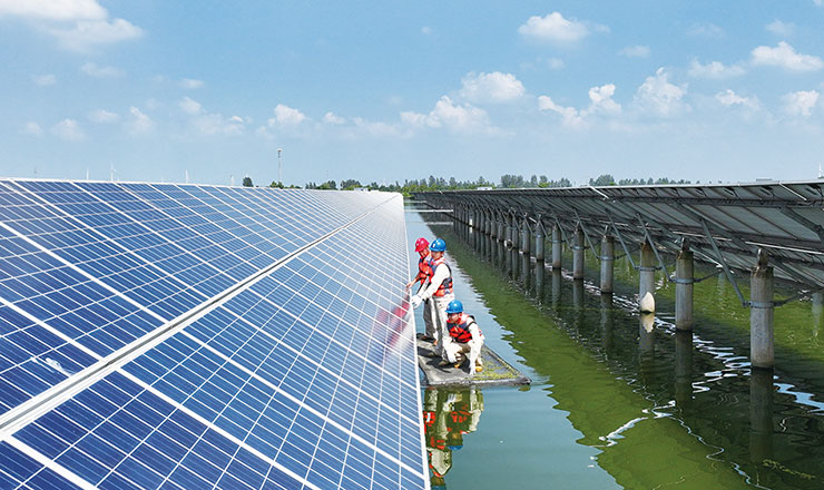 日前,市供电公司临泽供电所员工前往位于临泽镇陈甸村的“渔光互补”发电站,与发电站工作人员一道巡查光伏发电设备,保障发电站在迎峰度夏期间足额发电。据悉,该发电站于2014年12月12日并网,占地总面积2654亩,由15个鱼塘组成,总建设容量100兆瓦,今夏日均发电量50万千瓦时左右。
