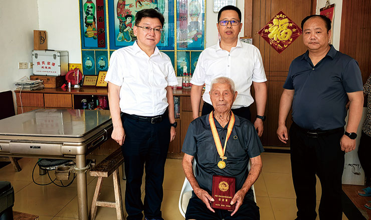 近日,市退役军人事务局组织看望慰问抗战老兵,向老兵们致以崇高敬意和真挚问候,并向他们颁发“中国人民抗日战争胜利80周年”纪念章。