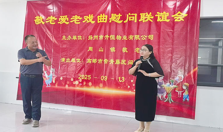 尊老敬老爱老是中华传统美德。近日,扬州升恒物业公司邀请当地常青藤民间艺术团,走进周山镇敬老院,为老人们专题举办了一场以“敬老爱老”为主题的戏曲演唱会,用传统扬淮剧给老人们送上了一份精神大餐。图为活动现场。