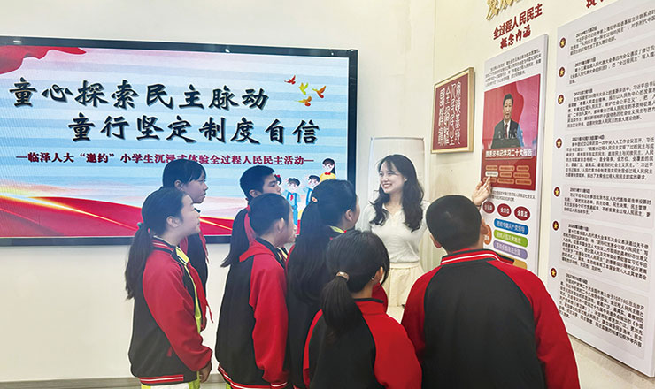 日前,临泽镇全过程人民民主实践基地迎来了一堂独具匠心、别开生面的国情教育课。课堂上,川青小学的十余名学生满怀热忱,在此开启了一场从庄严国旗仪典到鲜活民主实践的沉浸式探索之旅。在这场旅程中,同学们通过模拟人大代表履职过程,深度体验民主决策的魅力,尽情抒发对祖国的热爱之情。