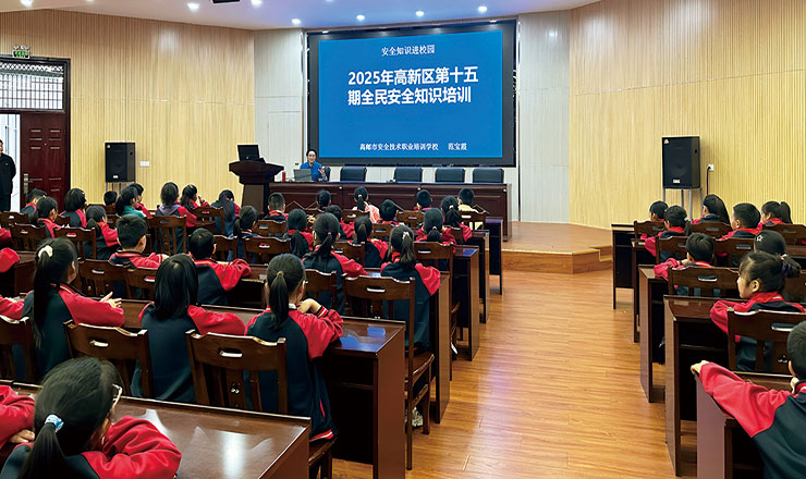 近日,郭集实验小学邀请高新区(送桥镇)人民政府相关人员走进校园,为三、四年级学生举办了一场以“投资韧性建设,提升防灾减灾能力”为主题的安全知识讲座。图为活动现场。