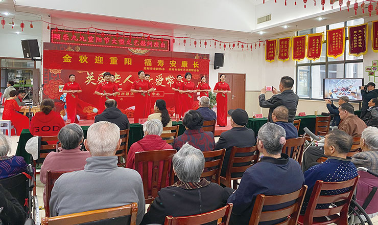 25日下午,市颐乐养老院热闹非凡,由市老龄协会、市老年艺术团联合会表演者带来的重阳节慰问演出在此举行。轻盈优美的手势舞、悠扬动听的笛子二重奏、灵动自如的柔力球表演、活力满满的舞蹈、气势恢宏的合唱、深情款款的萨克斯独奏、优雅大方的时装走秀……一个个精彩的节目轮番上演,让养老院老人们在欢乐中感受到了社会各界的关怀与温暖。