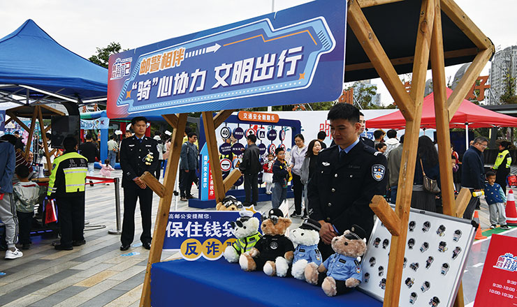 近日,市公安局在“扬州公安 伴您平安”第二届警营开放日活动现场,通过设立“邮警相伴”交通安全宣传展区,全面宣传交通安全相关知识。展示区设驾驶儿童车辆骑行区、VR醉驾模拟体验区、VR探险身临其境骑行区、非遗肩担木偶戏交通安全宣传区4个板块,营造了浓浓的文明出行氛围。图为活动现场。 周明宝 曹蕾 东方 摄影报道