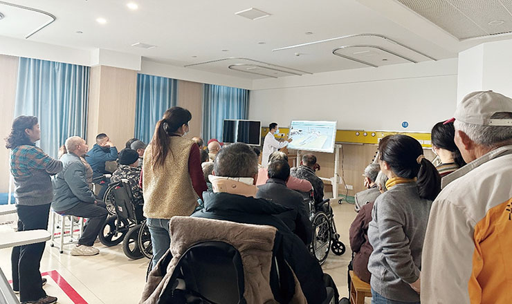 近日,市人民医院康复科医护人员利用患者休息时间,在病区内开展医患康复沙龙活动。活动中,讲解师围绕“脑卒中实用康复训练方法”和“悬空灸烫伤预防与处理”等主题, 详细讲解实用康复技巧,并对患者在康复训练中遇到的问题提出了针对性的康复方案。图为活动现场。 从尤艳 东方 摄影报道