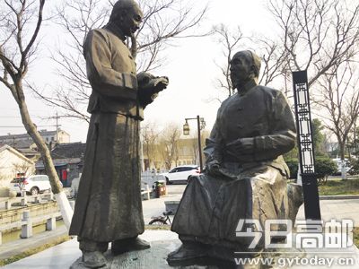 在西后街王氏纪念馆门前,有一座王氏父子边读书边讨论的雕塑。雕塑人物表情细腻、动作自然、形象生动,让许多观赏过的市民和外地游客赞不绝口。日前,记者有幸与雕塑创作者,现任中国工艺美术协会雕塑专业委员会会员、江苏省美术家协会理事、淮阴师范学院美术创意与发展研究院院长华龙宝,进行了一次面对面的交流。