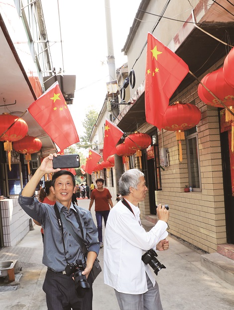 从一名从小失去父母的孤儿,到成为整天以打渔为生的“水上漂”,再到上岸定居、光荣加入中国共产党,家住太平新村46号的胡友来的成长轨迹,折射了他在新旧社会的两重人生。他向记者介绍,挂国旗是渔民多年的传统。“旧社会,渔民外出捕鱼时会在船上挂一块红布,一是测风向,二是遇到危险时摇晃显眼的红布求援,三是祈求风调雨顺。”胡友来说,新中国成立后,红布被国旗代替。再后来,渔民们陆上定居后,大家还延续着以前的传统做法,在家门口悬挂国旗。这既成为太平庄居民的一种特殊习俗,更是他们内心深处对祖国的感恩、礼赞之情。