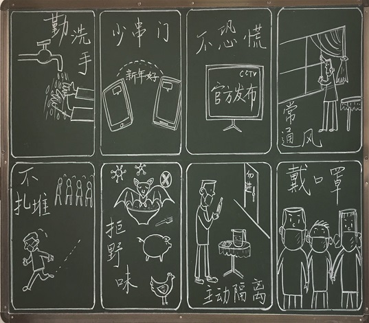 “荣誉是一份责任。在疫情防控紧要关头,我们觉得有义务宣传好相关防控科普知识,为抗击疫情作贡献。”吴联荣说,自己生活在农村,当看到少数村民未能正确认识和对待当前疫情,就开始琢磨如何让大家高度重视起来。思前想后,他决定用自己擅长的漫画图普及防疫知识。“勤洗手、少串门、不恐慌、常通风、不扎堆、拒野味、主动隔离、戴口罩……”记者看到,简短的1分零4秒的视频中,夫妻二人简明扼要地介绍了8幅漫画图。用粉笔勾勒的漫画,笔法简单、人物表情幽默,再配上简短的25个汉字说明,将疫情防控知识中的“重点”勾划出来,一目了然。吴联荣说,创作这些漫画就是想用简单轻松的方式,来普及防疫知识,劝导大家做好防护措施,同时通过这种新的方式,让村民朋友加深印象。