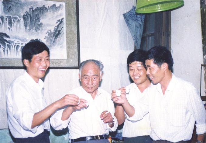 1991年家宴时合影 左起:赵立平 汪曾祺 赵立和 赵京育