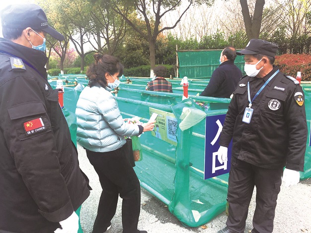 第二道“卡口” 距离第一道关卡约50米,此处设置了多条缓冲通道。数名工作人员一边为前来祭扫的市民测量体温,一边提醒大家用手机微信扫描“出行码”“健康码”进行登记。遇到老年市民无法进行微信扫码登记时,工作人员则一一核实他们的身份证。“我们派出所共安排了5名人员在此执勤。”正在为市民测量体温的开发区派出所巡防队队长赵国平介绍说,考虑到清明节假日市民祭扫将达到高峰,执勤人员将增至10人,以确保安全祭扫。