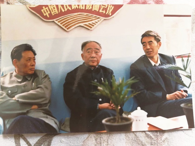 (图注:一九八六年十月二十八日上午在高邮政协会议室召开高邮县志编写座谈会后拍。中为汪曾祺左为王鹤右为朱延庆)