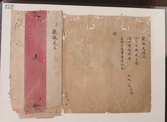 2、捷报处等机构职能。邮传文书中涉及多个部门单位的名称,了解这些单位的职能也就能知晓清代邮传运行机制的一些情况。有一件军机处文书,上书:“捷报处谨启,今日军机处交发两江总督夹板一副(马递),并无呈递事件,谨此奉闻。”捷报处是清代邮传机构,属兵部,设在京师东华门外,掌管驰送文报。各省由驿站所递奏折,由捷报处交奏事处进呈。“军机处”,也称“军机房”“总理处”,是清朝的中枢权力机关,军机处发出的奉旨“字寄”密封,或各省奏折,硃批后由军机处发回,交捷报处加封驿送。“兵部职方司”,清代兵部四司之一,掌管舆图、军制、城隍、镇戎等。“总管内务府”,内务府是清朝独有的机构,职官多达3000人,主要职能是管理皇家事务,主官为内务府总管。“陆军部”,清末新设的中央机构,掌管全国陆军行政事宜。“法部”,清光绪三十二年(1906年)由刑部改称,掌管司法行政、监督大理院及京内外审判、检察机关。“度支部”,由户部更名而来,是清代掌管财政事务的机构。“总督”,清代指统辖一省或数省行政、经济及军事的长官。“巡抚”,明代是指派驻地方巡视监察的官员,清代正式定为省级高级职位,掌握全省军政大权,地位在总督之下。