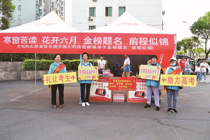 “非常感谢志愿者的贴心服务,特意提前一天将我们送至考点附近的宾馆,我们很感动。”家住临泽镇的赵秀告诉记者,女儿坐大巴容易晕车,从临泽坐车到高邮要一个多小时的车程,为此,太阳雨志愿者协会提前清洁好车辆,备好清凉油、晕车贴等用品,开考前一天便将赵秀的女儿送至考场附近的宾馆,确保考生以良好的状态迎考。