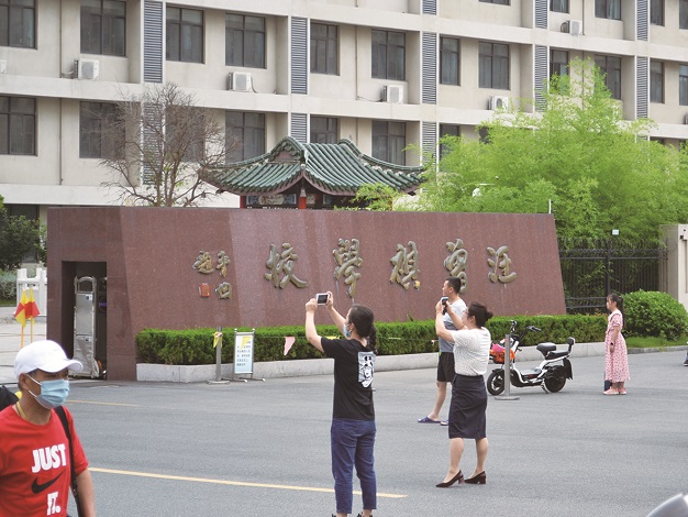 早上8点不到,不少考生陆续到达各考点。在汪曾祺学校门口,朱先生也早早将孙子送至考点,穿红色衣服的他在人群中格外亮眼。朱先生告诉记者,他是一名退休教师,今天是孙子人生第一次大考,他专门从上海回邮为孩子加油。
