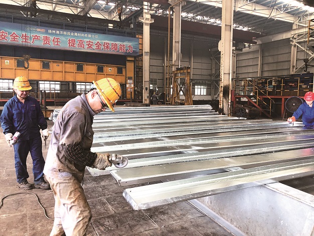 在扬州澳洋顺昌金属材料有限公司的生产车间内,头戴安全帽的张健边查看着产品,边叮嘱身边的员工要认真过细产品质量。“你看这些产品都是我们高邮本地的订单。”张健指着场地上的镀锌灯杆告诉记者。虽然来高邮仅仅三年多,但可以看到高邮的飞速发展,今年澳洋顺昌就接到了不少来自高邮本地的订单,现在公司上下都在加紧赶订单。