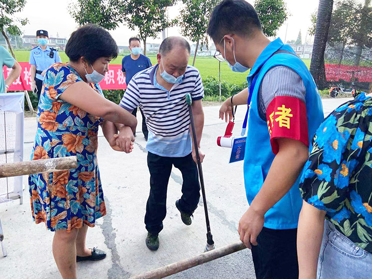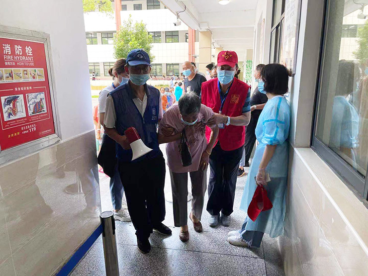 从年轻高中生到七旬老者,志愿者们不分年龄,不分身份,他们成了这场硬仗的得力帮手。在检测人群中,有的残疾人行动不便,有的老人没有健康码、行程码。每当检测人员遇到难题时,志愿者们都会上前提供服务,帮老人推轮椅、搀扶老人坐下、为老人注册健康码、给老人戴上口罩、解答各种问题,体贴又周到。