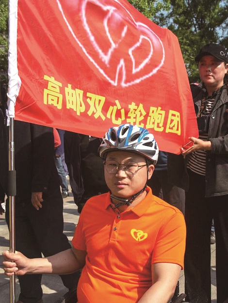 精神一变天地宽。张军又恢复了以往开朗、爱笑的性格。他投身创业,收入稳定;他积极参加户外活动,在轮椅上“走”出精彩人生。张军感言,自己能深切感受到依赖轮椅生活的各种不易。亲身经历这一切的他决定去帮助更多的残疾人朋友,用自己“站”起来的事实告诉大家:我可以走出心理阴霾,适应与轮椅为伴,活出自己的价值和尊严,你们也一定行。今年,张军在自己创建的“扬州残疾人自强不息群”发出倡议,开展轮椅登黄山和看扬州园艺美景大型活动,得到残友的大力支持,并在市残联的帮助下,成立双心残疾人轮跑车友俱乐部,集宣传者、组织者、服务者、管理者、志愿者于一身,为了让残友玩得开心舒服,他还提供资金保障。