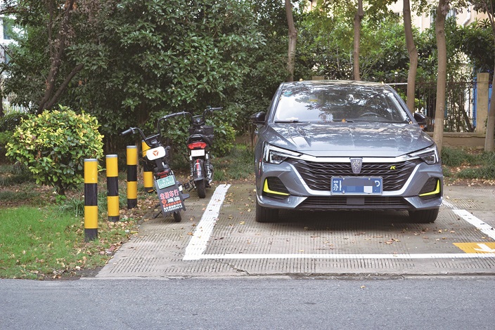 市水政监察大队对面机动车停车位内停放了两辆非机动车。