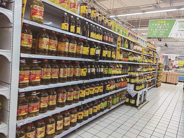 上午9时左右,记者首站来到苏果超市世贸店。一进店感到眼前豁然开朗,货架上陈列的商品琳琅满目,让人目不暇接。记者直奔市民关注的粮油销售专区。环顾专区,起着各个名号、“穿着”各色包装的大米整齐堆放在一起,堆有两个囤位,看上去货源充足。再看食用油专柜,六层货架置满了“胖胖”的油桶,金色透亮,整齐排列,看上去数量很多。与充足的货源相比,记者倒是发现超市内购物的人并不多。“我们的货物供应非常充足。”世贸店经理吴小罡给记者看了一张生活必需品日报表,苏果超市仅世贸店存有的大米(不含这两天进货)可供7天、桶装油可供15天,面粉、方便面、火腿肠、猪肉、鸡蛋、蔬菜、冻禽等生活必需品更是供应充足。