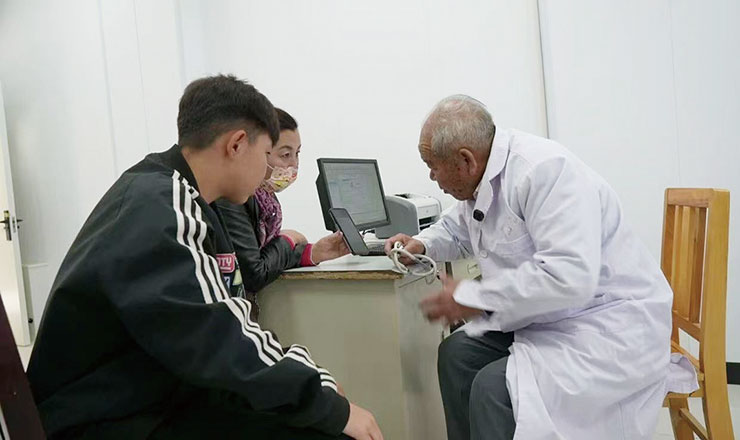 少年名叫努尔加纳提,四年前右手臂摔断,就是经吴登云治好的。今天他感觉身体有点不舒服,就让妈妈领着来找这位和蔼可亲的爷爷给看看。少年的妈妈古力司坦见到吴登云更是难掩内心的激动,她告诉我们,他们一家与吴医生有着跨越数十年的医患情缘:当年吴登云在地震废墟中救下的女婴就是她的妹妹。