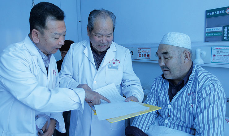 在乌恰的每一天,你都能看见这样的画面:吴登云用带着浓重高邮口音的普通话与老乡亲切交流,年轻的汉族医生为少数民族患者细心检查,来自常州的医疗专家与本地医生共同研讨病例……