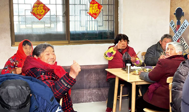 冬日的暖阳洒在院子里,老人们吃完饭,在院中散步、聊天,享受着惬意时光。他们身上暖,心里更暖。食堂按照“年龄越大,收费越少”的原则,收取1元至4元不等的费用,对五保户、困难家庭老人,只象征性收取1元。