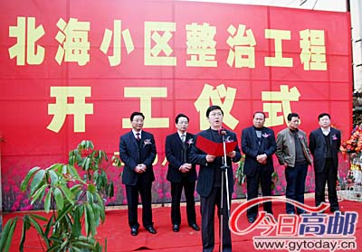 列为今年城建十大重点工程之一、小区居民盼望已久的北海小区整治工程开工仪式30日隆重举行。市委常委、常务副市长黄为民出席仪式并讲话,市人大常委会副主任薛晓寒、市政协副主席姚美学出席仪式。