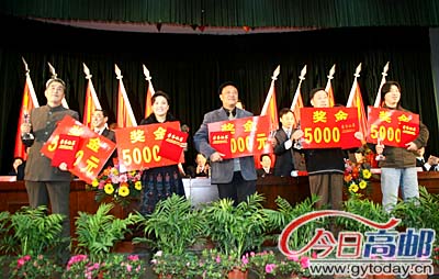 会议表彰奖励了我市文化领域最高荣誉奖“秦少游文化奖章”获得者张元奇、张爱华、陈仲如、殷旭明等四位同志和高邮市歌征集创作小组,会议同时设立高邮文化发展基金,用于奖励文艺精品力作的生产和文化事业的发展。