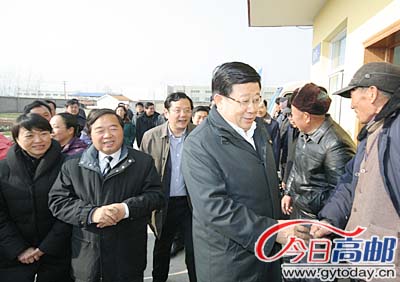 春节临近,困难群众的生活怎么样?11日上午,省委常委、省政府常务副省长赵克志率省政府办公厅、民政厅等部门负责人,冒着严寒来我市走访慰问,向部分农村老党员、困难群众以及五保老人送去新年祝福,让他们在寒冬中感受到了党委政府的温暖。扬州市委书记季建业,扬州市长王燕文,扬州市委常委、市委秘书长卢桂平,扬州市副市长王玉新,扬州市副市长、高邮市委书记陈扬,以及我市领导夏正祥、黄为民、乔国银、高长明等参加陪同。