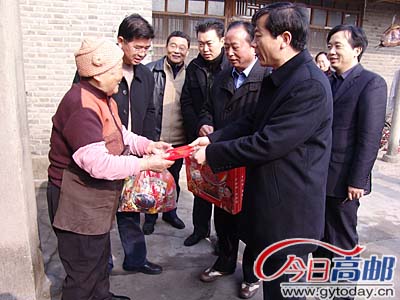 在牛年新春佳节即将来临之际,秦邮大地处处洋溢着浓郁的吉庆祥和气氛,安排好困难群众的生活最为各级领导挂念。21日上午,陈扬、夏正祥、朱德辉、倪文才、张安龙等市四套班子领导分成五路,走访慰问了全市部分优抚对象、残困户、重病户、老党员、低保户等,送去新春的美好祝愿 , 送上党和政府的温暖。陈扬强调,各地各部门一定要妥善安排好城乡困难群众的生活,确保困难群众基本生活有保障,过一个欢乐祥和、幸福安康的春节。