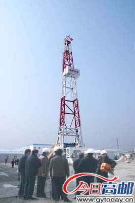 昨日,华兴石油机械有限公司生产的第二台石油钻机井架一次性安装成功。