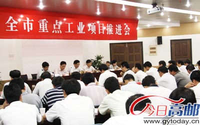 30日,市委、市政府举行全市重点工业项目推进会,对重点工业项目建设进行再督查、再推进。与会人员现场观摩了顺大多晶硅铸锭、太阳能用玻璃、红旗电缆、曙光电缆、吉信远望船舶、康宝电器、卫星卷烟材料、润华电缆以及金业盈辉科技、江标集团等项目建设现场。市领导陈扬、夏正祥、王正年、尤泽勇、汤学仁、王薇参加推进会。